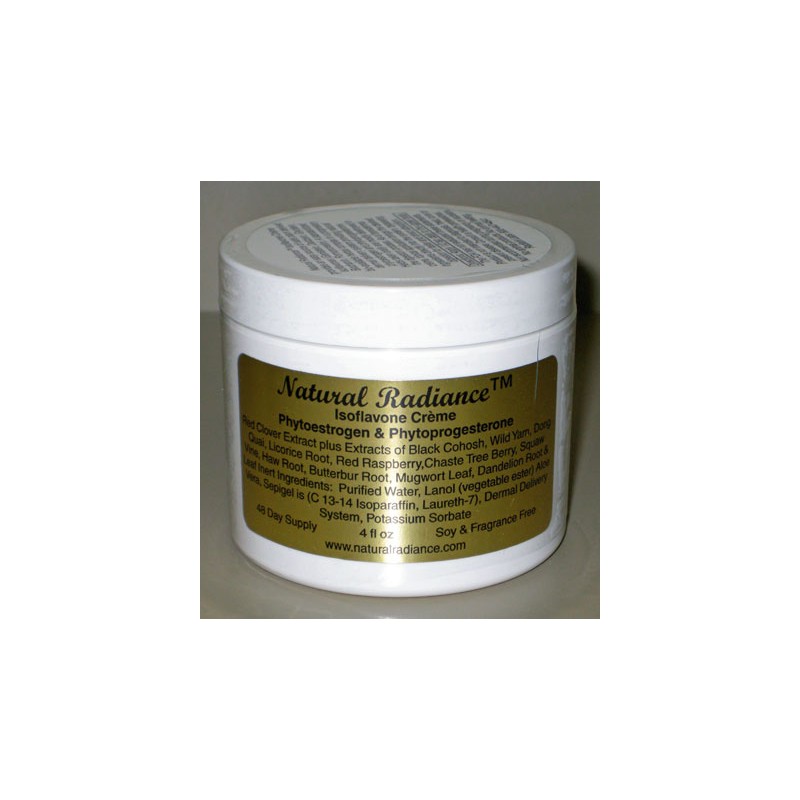 Natural Radiance Menopause Crème provides an easy source of safe plant derived isoflavones, Genistein, Daidzein, Glycitein, Biochanin and Formononetin. A standardized bio‑available herbal complex in a proprietary Dermal/DMS delivery system providing natural phytoestrogens and phytoprogesterones. Herbs taken orally are mostly destroyed in the digestion process. As a crème, topical application brings the desired ingredients directly into the system, bypassing digestion for faster and direct absorption.